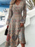 Women's Autumn Casual V-Neck Printed Long Sleeve Dress