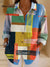 Women's Beautiful Colorful Abstract Geometric Color Block Line Art Print Casual Cotton Shirt