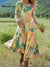 Women's Paisley Print V-Neck Long Sleeve Casual Loose Dress