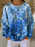 Women's Blue Gradient Flowers Pattern Art Print Casual Cotton Shirt
