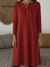 Women's Casual Henley Neck A-line Knitted Midi Dress