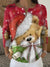 Retro Christmas Snowflake Art Pattern Polo Collar Shiny Loose Sweater Top