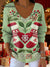 Women's Christmas Gloves Snow Art Pattern Art Print V-neck Solid Color Loose Shiny Sweater