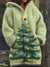 Women's Christmas Tree Pattern Art Print Casual Fleece Coat