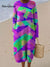 Women's Color Block Abstract Pattern Casual Round Collar Long Sleeve Dress
