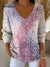 Women's Color Gradient Art Pattern Art V-neck Solid Color Loose Shiny Sweater