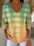 Women's Color Gradient Art Pattern Art V-neck Solid Color Loose Shiny Sweater