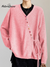 Women's Colorful Button Wool Lace-Up Sweater