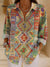 Women's Colorful Ethnic Rhombus Geometric Art Print Casual Cotton Shirt