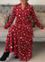 Women's Paisley Print V-Neck Long Sleeve Casual Loose Dress