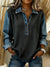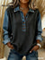 Women's Denim Patchwork Shirt Collar Casual Loose Color-blocked Knit Top