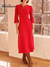 Women's Elegant V-neck Stretch Corduroy Midi Dress