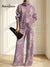 Women's Retro Colors Gradient Patterns Art High-neck Long-sleeve Casual Loose Knit Dress