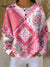 Women's Floral Pattern Art Print Casual Cotton Waffle Sweatshirt