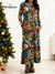 Women's Retro Print Round Neck Long Sleeve Casual Loose Knit Dress