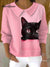 Women's Funny Cat Art Print Casual Cotton Sweater