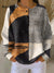 Women's Plaid Patchwork Pile Neck Long Sleeve Casual Loose Knit Top
