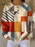 Women's Plaid Patchwork Pile Neck Long Sleeve Casual Loose Knit Top