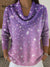Women's Gradient Purple Sparkling Print Cowl Neck Sweater