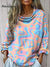 Elegant and Soft Art Print Irregular Hem Round Neck Knit Top