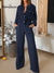 Women's Lapel Long Sleeve Casual Loose Top High Waist Casual Wide Leg Solid Color Cotton and Linen Set