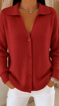 Women's Solid Color Shirt Collar Long Sleeve Knit Cardigan