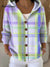 Women's large Plaid Printed Casual Hooded Button Sweater