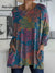 Elegant and Soft Art Print Irregular Hem Round Neck Knit Top
