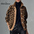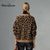 Women's Leopard Print Stand Collar Single Breasted Long Sleeve Knit Sweater Jacket