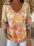 Women's Vintage Floral Print V-Neck 3/4 Sleeve Casual Loose Velvet Dress