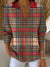 Women's Vintage Plaid Print Crew Neck 3/4 Sleeve Casual Loose Sweater