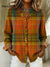 Women's Plaid Print Casual Cotton And Linen Ruffle Shirt
