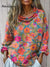 Elegant and Soft Art Print Irregular Hem Round Neck Knit Top