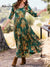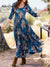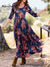 Women's Retro Floral Print Round Neck 3/4 Sleeve Knit A-Line Dress