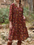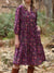 Women's Retro Floral Print V-Neck Long Sleeve Pocket Casual Loose Linen Dress