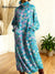 Women's Retro Flowers Color Gradient High-neck Long-sleeve Casual Loose Knit Dress