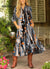 Women's Paisley Print V-Neck Long Sleeve Casual Loose Dress