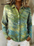 Retro Christmas Gradient Snowflake Art Pattern Polo Collar Shiny Loose Sweater Top