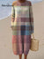 Women's Retro Plaid Pattern Art Casual Round Collar Long Sleeve Dress
