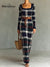 Women's Retro Colors And Plaid Patterns Art High-neck Long-sleeve Casual Loose Knit Dress