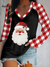 Women's Santa Claus Check Print V-Neck T-Shirt