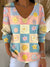 Women's Simple Floral Multicolor Abstract Casual Print Pullover Sweater