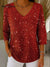 Women's Simple Printed V-Neck 3/4 Sleeves Casual Loose Knitted Pullover