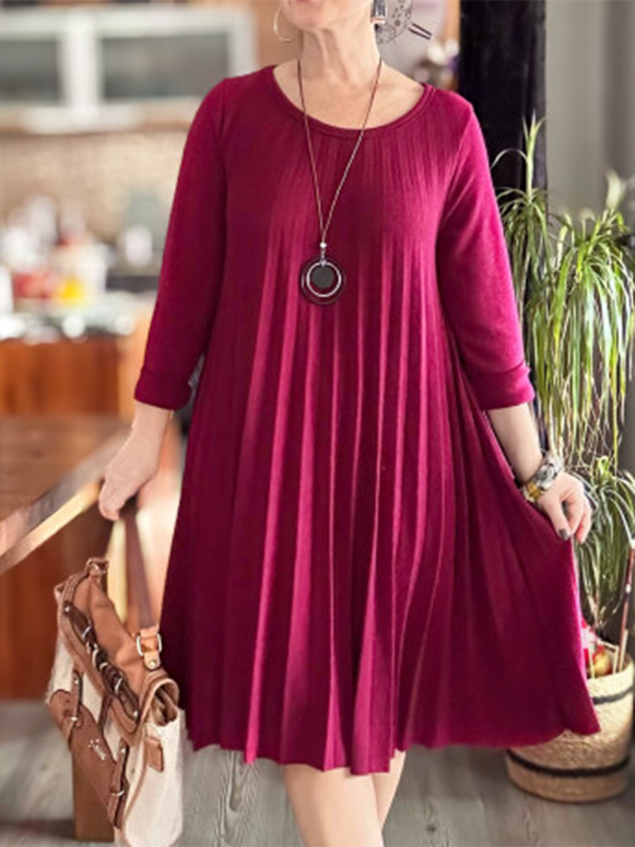 Women's Soft and Elegant Pleated Round Neck Knit Dress