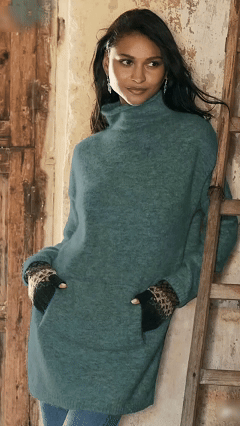 Women's Solid Color High Collar Loose Side Slit Pocket Sweater Top
