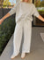 Women's Solid Color Round Neck Long-sleeved Casual Loose Top And High-waisted Solid Color Casual Wide-leg Pants Set