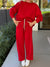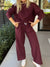 Women's Solid Color V-Neck Long Sleeve Casual Loose Sweatshirt and High-Waisted Wide-Leg Pants Set