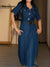 Women's Solid Color Shirt Collar Short Sleeve Loose A-Line Denim Dress