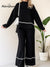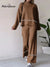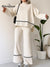 Women's Solid Color V-Neck Long Sleeve Casual Loose Sweatshirt and High-Waisted Wide-Leg Pants Set