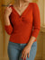 Women's Solid Color V-Neck Long Sleeve Casual Knit Sweater